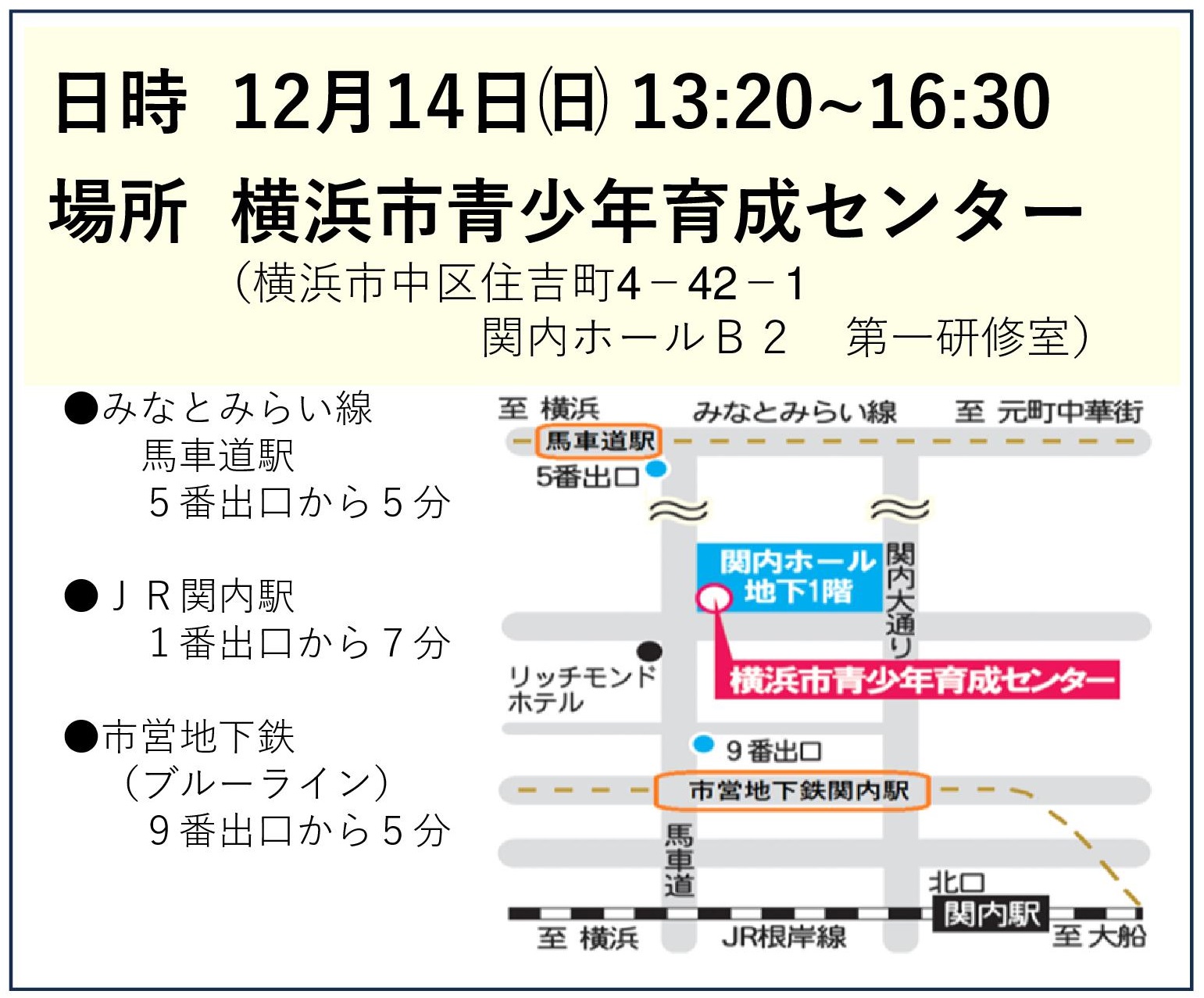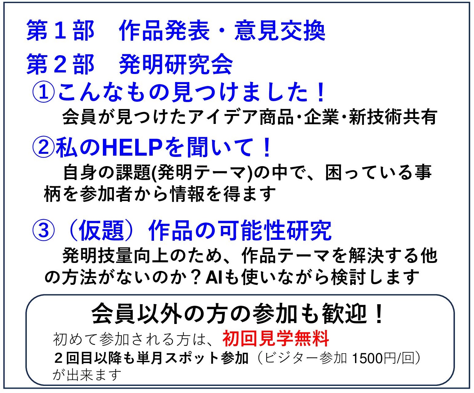 ○ 12月14日「日曜発明サロン」に参加希望の方は、12月13日(金)までに、info@yokohama-hatsumei.com宛、メール連絡(氏名、住所、緊急連絡先など)願います。