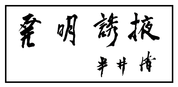 アイコン「発明誘掖(はつめいゆうえき)」は、当会設立を下命した初代横浜市長:半井清氏の揮毫(詳しくは「60年のあゆみ」)