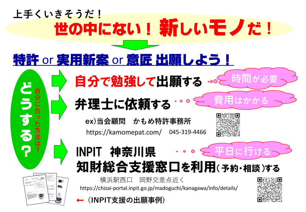 ➡アイデアがひらめいた方:発明・ 考案としての価値を判断したいなど、「日曜発明サロン」へ参加しましょう。