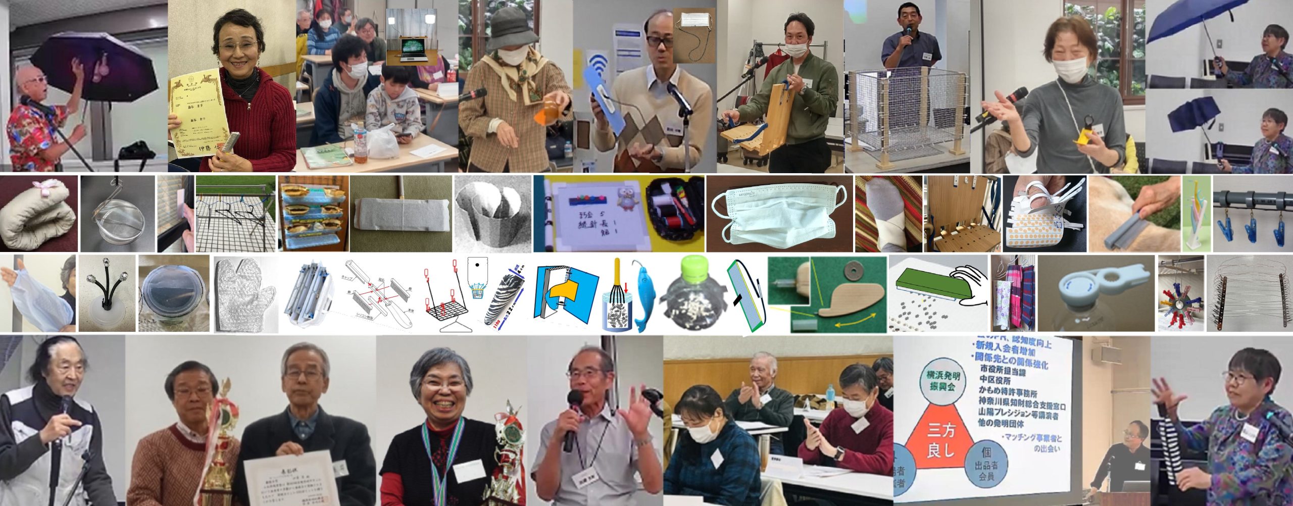 NPO法人横浜発明振興会は、「ヒラメキを形に!」をテーマに、身近な「困った!」「不便」「あったらいいのに!」を解決する「発明」や「生活改善アイデア」を創出することを楽しみ、互いの知見や技量を高め、アイデアの実現と発信を行う仲間が集まる団体です。